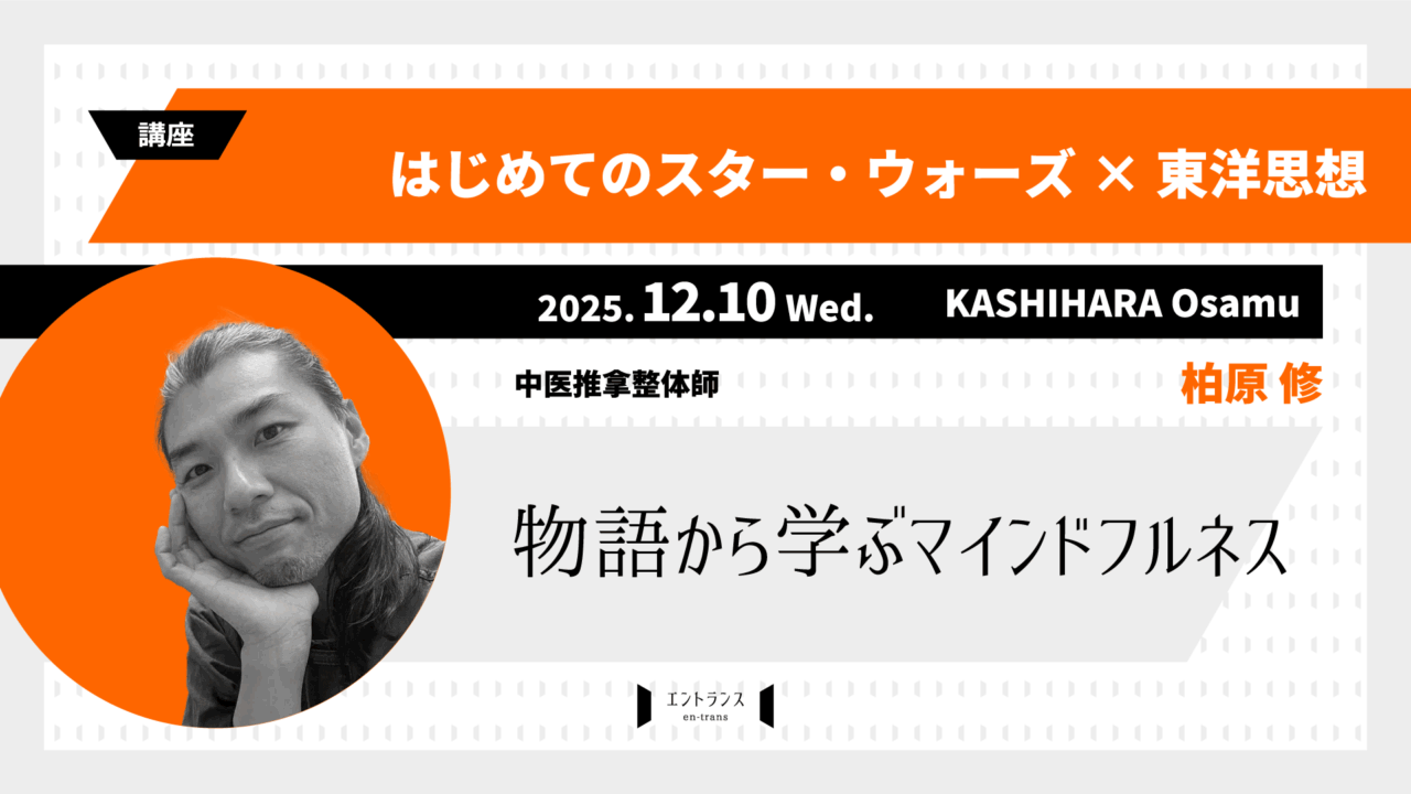 世界中で人気の映画「スター・ウォーズ」。スター・ウォーズの物語と「東洋思想」との関係についてお話します。スター・ウォーズの世界で重要とされる「フォース」には、タオイズムや仏教といった東洋哲学のエッセンスが隠されています。本講座では映画の名場面を振り返りながら、ジェダイの知恵や光と闇のバランスを東洋思想の視点から楽しく読み解きます。 |