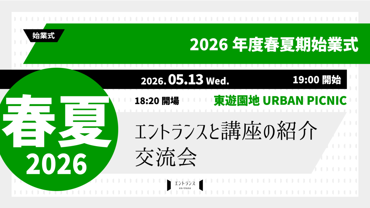| 2026年春夏期始業式「エントランスの説明/2026年春夏の講座紹介」 会場が通常の場所と異なります。詳細は事前にメールでご案内しますので、必ずメールをご確認下さい。 |