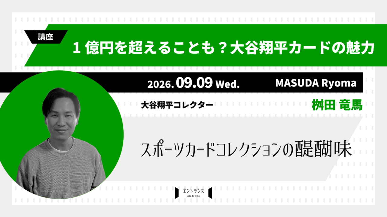 スポーツカードは、単なる紙のカードではなく、その選手の瞬間や物語を閉じ込めた小さなタイムカプセルのような存在です。この講座では、大好きな選手のカードを集める楽しさや、思わず語りたくなるカードの見どころなど、スポーツカードの奥深い世界を紹介します。また、コレクションを始めたり続けたりする上で知っておきたい「価値が評価されやすいカードの特徴」についても少し触れます。大好きな大谷翔平選手のかっこいいカードや直筆サインカードを趣味として集めつつ、それが資産としても価値が上昇していくなんて素敵じゃありませんか?コレクションの醍醐味を感じてもらえる時間になればと思います。